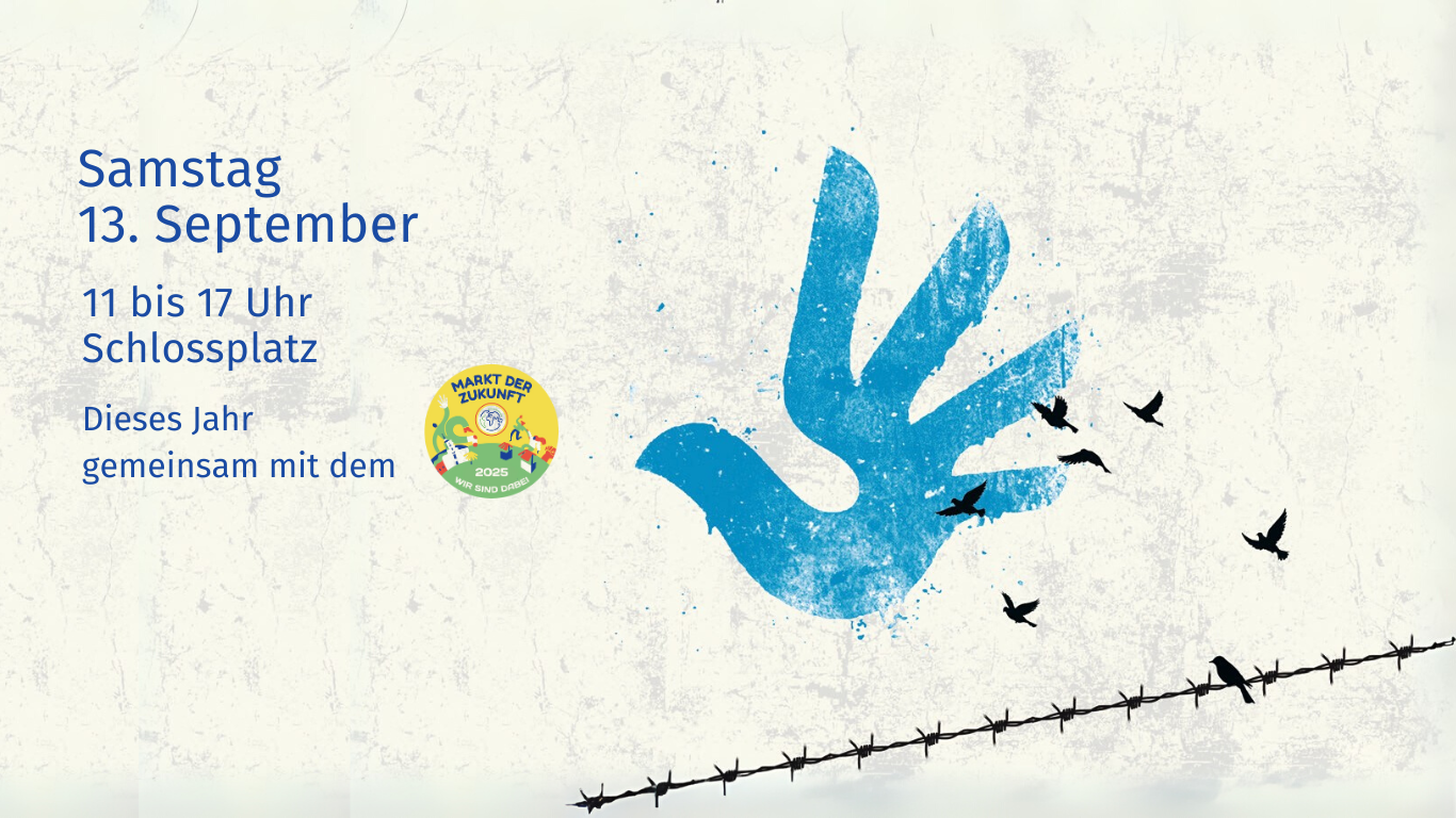 Dieses Jahr am 13.09., 11 bis 17 Uhr auf dem Schlossplatz – gemeinsam mit dem Markt der Zukunft. Vorveranstaltungen Mo. 25.08., 19:30 Uhr im Casablanca Kino Kein Land für Niemand…
