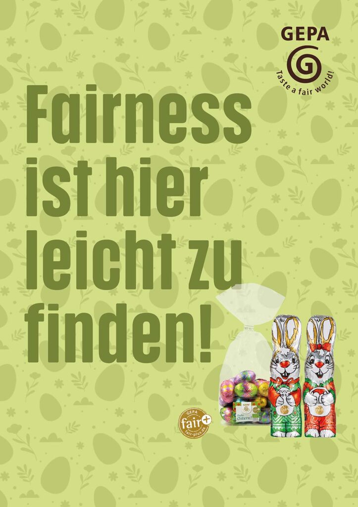 Im Weltladen gibt es eine bunte Auswahl an fairen Osterprodukten: von schönen Deko-Artikeln aus Filz, Holz oder Stein bis zu leckeren Schoko-Hasen, Häsinnen, Lämmern und natürlich Schoko-Eiern. Kommt vorbei und unterstützt mit Eurem Einkauf Kooperativen und Produzent:innen.